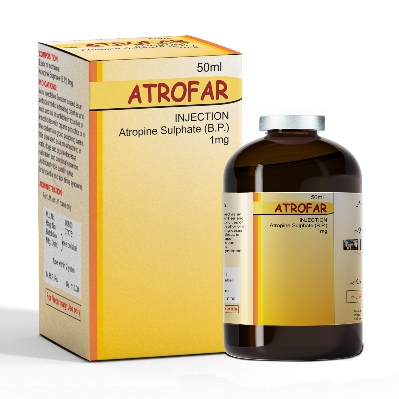 Composition: Each ml contains: Atropine Sulphate 1mg ATROFAR Inj e c t abl e Solution i s us ed a s an antispasmodic in treating diarrhea and colic and as an antidote in toxicities of insecticides with organic phosphorous or in the carbamate group poisoning cases. It